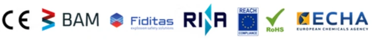 MAUS products contain a solid potassium-based substance. Potassium radicals are very active and interrupt the chemical combustion of very small gas particles, making it a more effective extinguishing agent than conventional powder.
